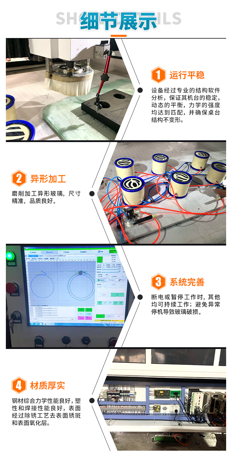 操作系統(tǒng)簡(jiǎn)介:l 、運(yùn)行速度快,運(yùn)行平穩(wěn),控制精度高,控制器結(jié)構(gòu)模塊化; 2 、流水線切割模式、光電定位切割模式、直接切割模式通過(guò)選項(xiàng)自由設(shè)置。 3 、加工路徑實(shí)時(shí)跟蹤顯示,警自動(dòng)記錄。適時(shí)記錄運(yùn)動(dòng)坐標(biāo),軸狀態(tài), ! / 0 狀態(tài),故障診斷與報(bào) 4 、下刀距離可設(shè)。編輯加工文件時(shí)可以不用修邊,提高玻璃利用率。 5 、 OX 「類文件的排序功能,有近點(diǎn)、切入點(diǎn),或按圖形顏色順時(shí)針、逆時(shí)針排序等選項(xiàng)。自由實(shí)現(xiàn)單相切割與雙向切割切換。 6 、圖庫(kù)套料編程,從圖庫(kù)中選取異形,設(shè)置相關(guān)參數(shù)、加工數(shù)量,自動(dòng)套料,生成加工軌跡。了、補(bǔ)償功能:刀具偏心補(bǔ)償、間隙補(bǔ)償、螺距補(bǔ)償。 8 、光電定位功能(確定玻璃的實(shí)際位置)切割。根據(jù)實(shí)際位置和偏轉(zhuǎn)角度,自動(dòng)調(diào)整 9 、各種保護(hù):包括軟硬限位、刀壓限制、外部急??刂频鹊?。、速度增加/降低按鈕可適時(shí)優(yōu)化機(jī)器切割速度。、人機(jī)界面簡(jiǎn)潔大方,參數(shù)調(diào)整簡(jiǎn)單,需要操作人員修改的參數(shù)較少,簡(jiǎn)單直觀,對(duì)操作人員要求低。、主機(jī)采用一體機(jī)模式,穩(wěn)定性高